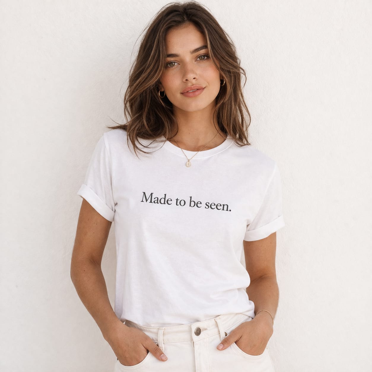 True style isn’t just about what you wear; it’s about how you feel. The “Made to be Seen” graphic tee is designed for the modern minimalist—the creators, the dreamers, and the bold. Whether you’re layering it under a blazer for a professional edge or pairing it with your favorite denim for a casual weekend look, this shirt speaks volumes without saying a word.
